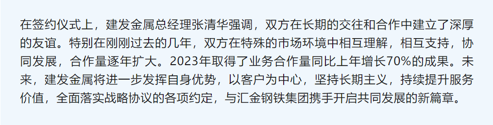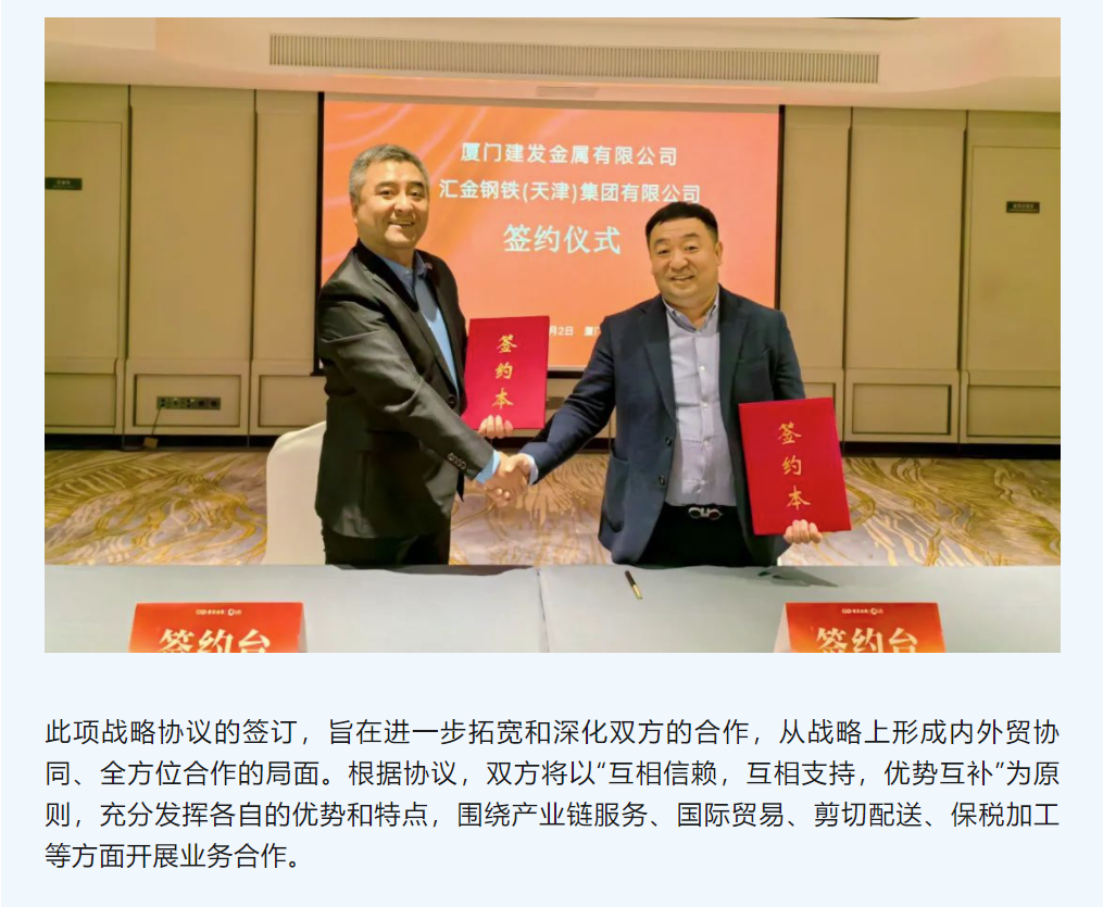 內(nèi)外貿(mào)協(xié)同,全方位合作| 建發(fā)金屬與匯金鋼鐵集團(tuán)簽訂戰(zhàn)略合作協(xié)議
